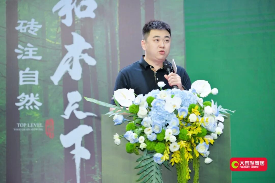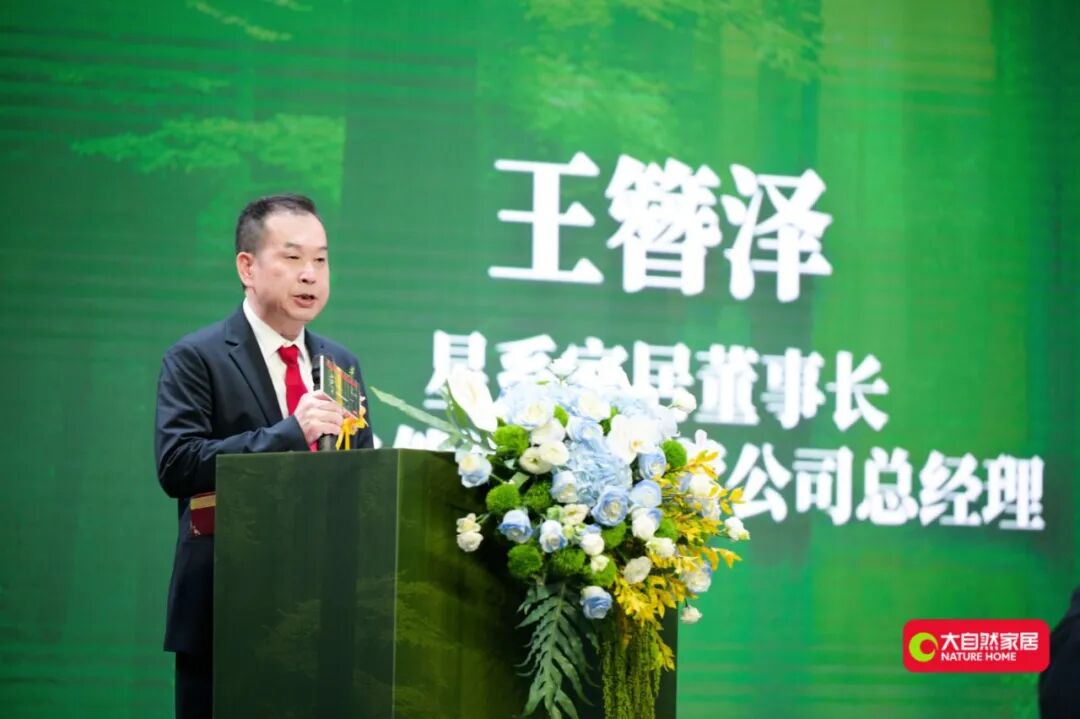在運營中心揭幕之后,活動移師主會場,進入更為核心的戰略發布與新品揭曉環節。星系家居董事長、大自然木紋磚運營中心總經理王簪澤先生在致辭中,首先對到場嘉賓表達了誠摯感謝。他闡述了大自然木紋磚未來發展的“三步走”戰略,并將始終以長期主義為指引,以產品力與伙伴關系為核心依托。其發言既體現了對產品品質的堅守,也展現了品牌深耕細分領域的戰略定力。
